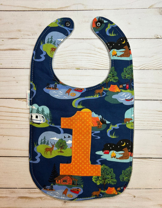 Camping First Birthday Bib