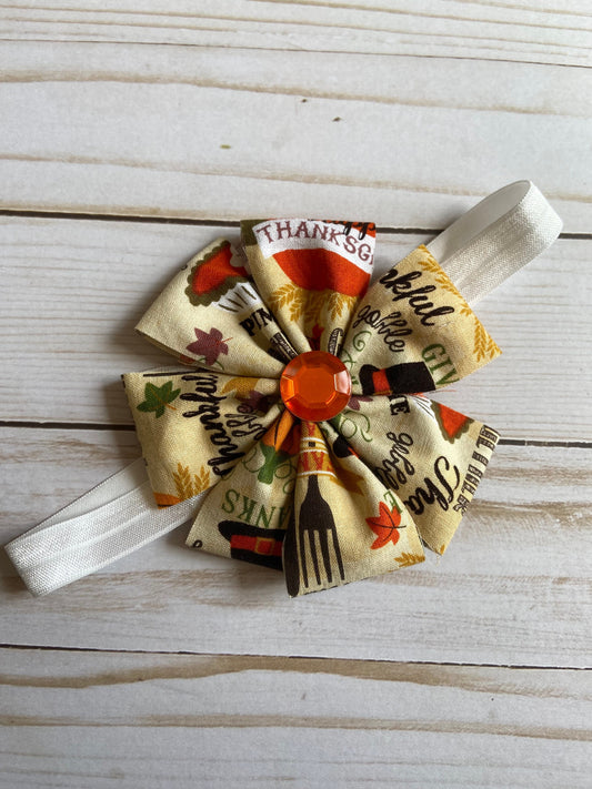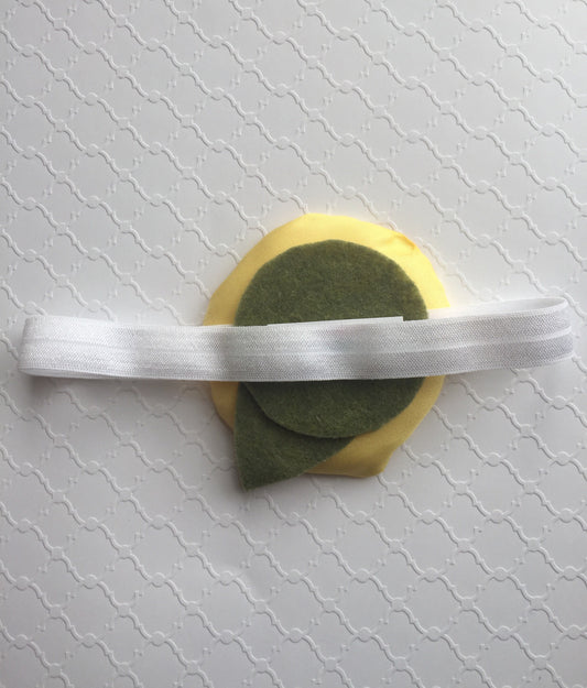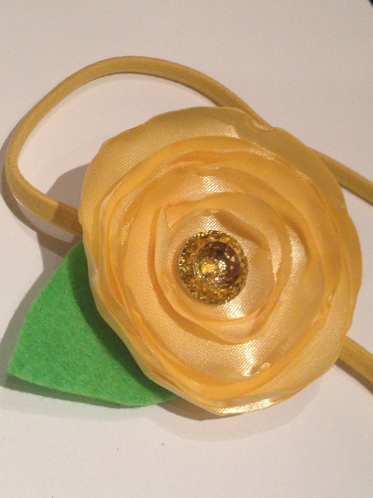 Yellow Satin Burned Edges Flower Headband with Yellow Rhinestone