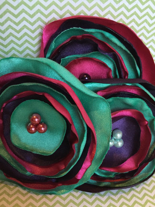 Turquoise, Eggplant and Fuchsia Silk Burned Edges Flower Headband
